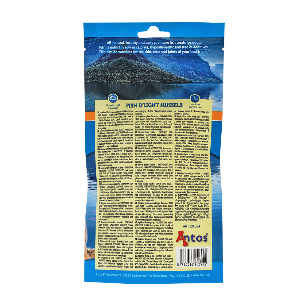 Le meilleur de la mer en friandises, tout simplement irrésistible. Nos Moules Fish D’light sont des friandises naturelles de qualité pour les chiens, riches en protéines et en nutriments essentiels. Naturellement riches en acides gras oméga-3, elles contribuent à une peau saine, un pelage brillant et au bon fonctionnement des articulations. Séchées avec soin, ces petites bouchées sont faciles à digérer et particulièrement savoureuses.
